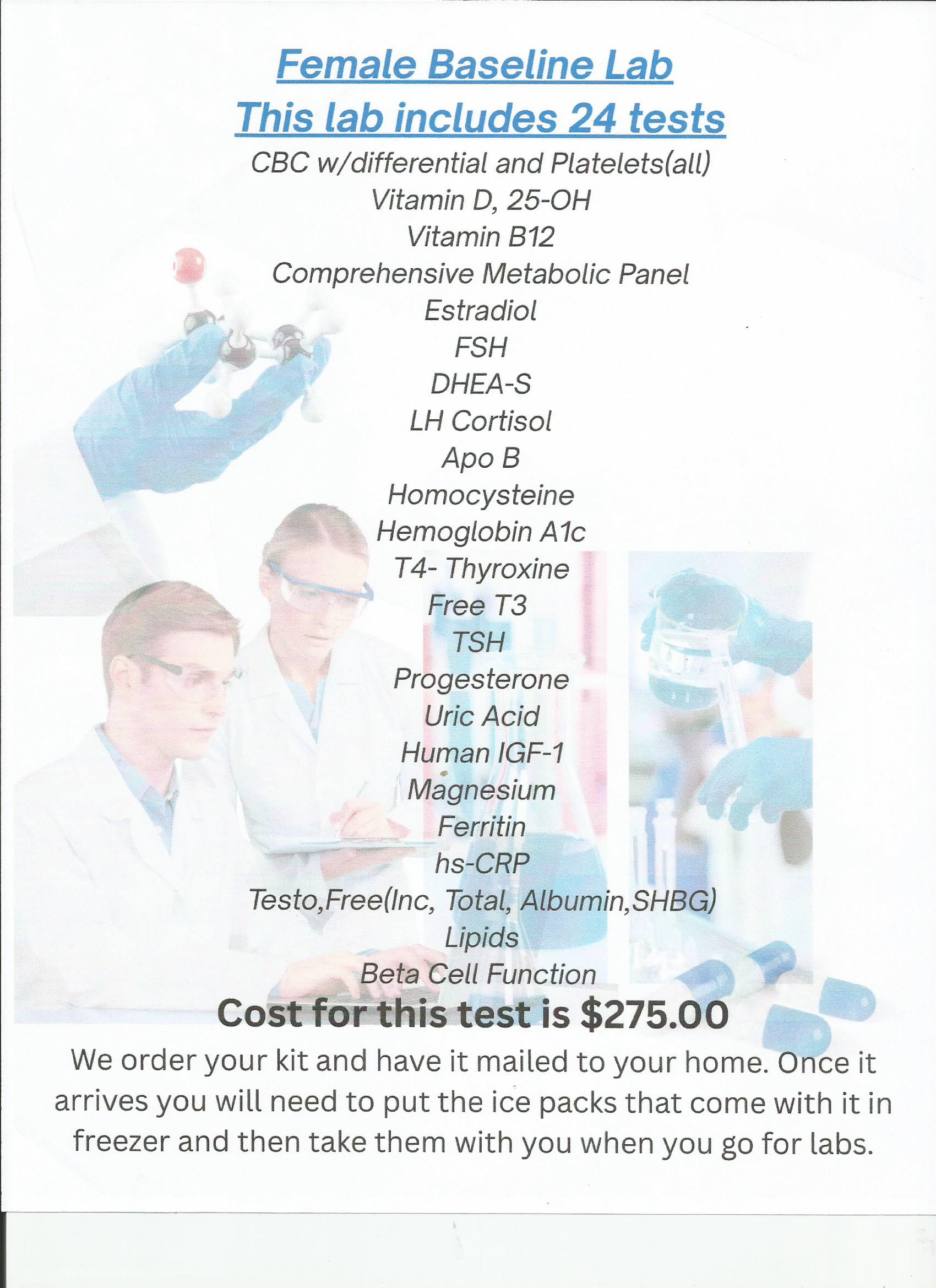 Female Labs provide a comprehensive look at the key hormones and biomarkers that affect a woman’s health, energy, and overall well-being. These tests evaluate reproductive hormones, thyroid function, adrenal health, metabolic balance, and essential nutrients. For chiropractors integrating Functional Medicine, Female Labs offer valuable insights into issues such as fatigue, mood changes, weight fluctuations, and menstrual or menopausal symptoms. With this data, customized care plans can be created to restore hormonal balance, support metabolism, and promote optimal vitality and long-term wellness.